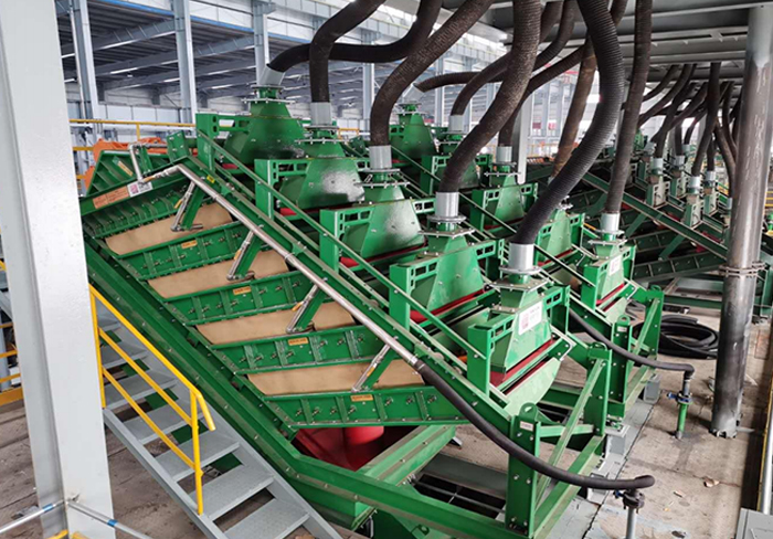 處理量更大,篩分效率更高;篩機整機采用聚脲噴涂技術(shù),保證設(shè)備長期使用的防腐性;立式擠壓式喂料結(jié)構(gòu),使每層礦漿均勻分布在每層篩網(wǎng)的整個寬度上;采用中心給料,內(nèi)部溢流分料,確保每路給料均勻等量,節(jié)約空間。