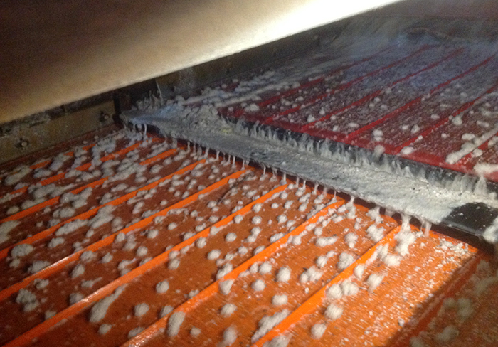 篩機主體采用鉚釘鉚接,保證了設(shè)備長期運行的可靠性和穩(wěn)定性,減少了維護次數(shù)和勞動量。篩機表面整體采用聚脲噴涂技術(shù)進行處理,增加了設(shè)備的耐磨性和防腐性,延長設(shè)備使用壽命。使用自主開發(fā)的聚氨酯精細篩網(wǎng),篩網(wǎng)不易堵孔,五路同時給料,處理量大,篩分效率高。
